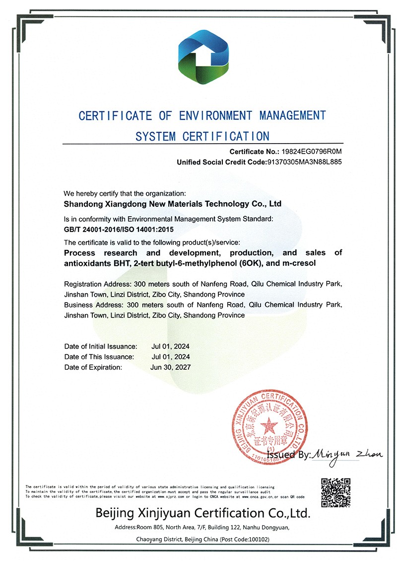 山東祥東新材料科技有限公司1.2萬(wàn)噸/年6-叔丁基鄰甲(60K)、4-叔丁基鄰甲酚(偏 24 酚)和 4,6-二叔丁基鄰甲酚(偏 246 酚)烷基甲酚項(xiàng)目竣工環(huán)境保護(hù)驗(yàn)收監(jiān)測(cè)報(bào)告